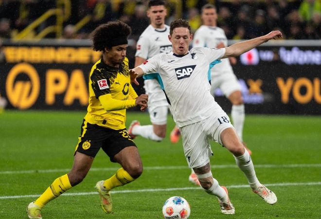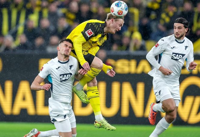 多特蒙德開場后在場面上并沒有優勢。顯然,周中的德國杯消耗了球員不少體能,這讓多特蒙德這次不得不踢得更加務實一些。不過,多特蒙德還是率先抓住了機會完成進球。布蘭特在第43分鐘中路包抄推射破門。半場結束,多特蒙德1-0領先霍芬海姆。